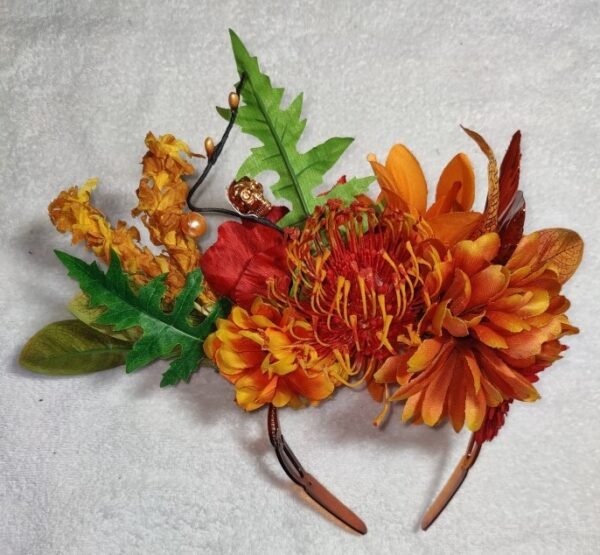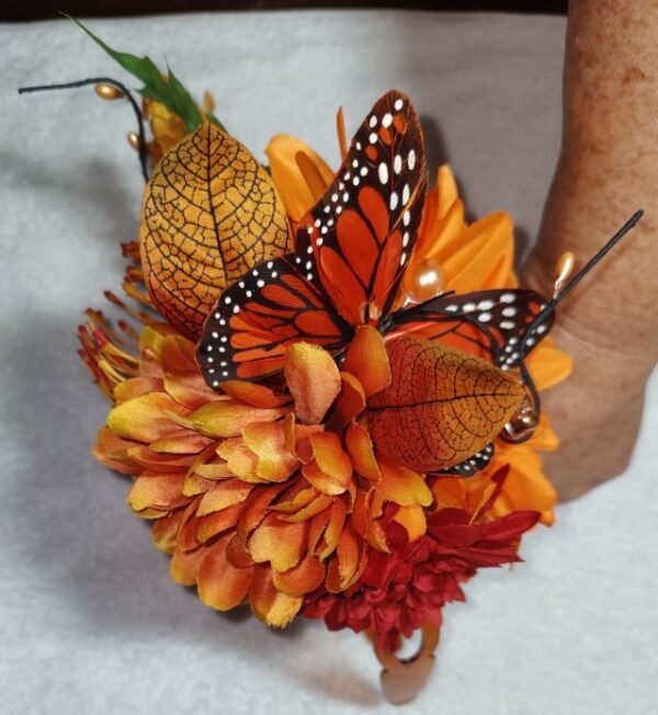 Side 2: 1 medium yellow orange mum, 1 protea, 1 small yellow orange mum.