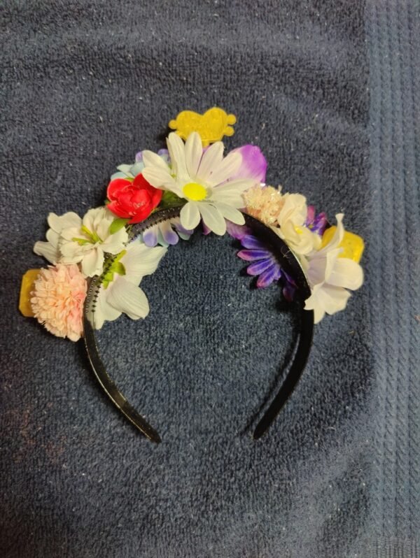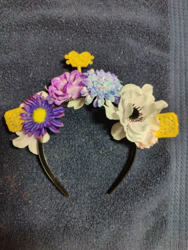 Side 1: small purple morning glory, small purple daisy, small purple cosmos, small blue/purple carnation, small lavender peony.
